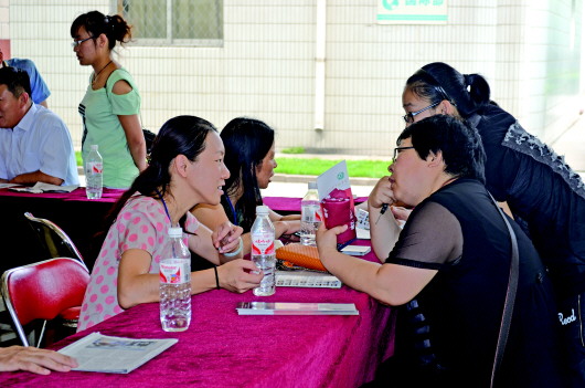 ▲为了给孩子报考理想的学校,家长在进行咨询。