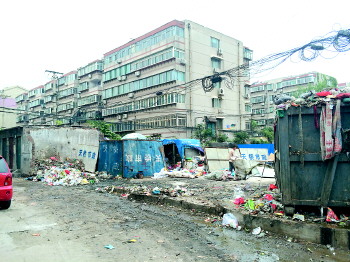 垃圾散发出的臭味让居民不敢开窗。据介绍,该楼周围将新建垃圾压缩箱。 本报记者 蒋龙龙 摄