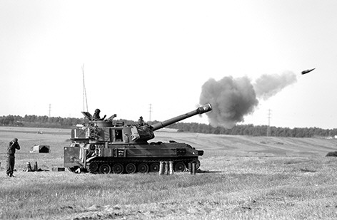 7月12日,在以色列和加沙地带边境,以军移动火炮向加沙地带发射炮弹。新华/美联