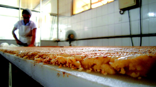 隆盛糕点里,最难被外界模仿的就是蜜三刀。把芝麻淘洗干净,搁在砂石基座里,用砂石杵子捣碎去皮。捞出放进砂锅里,慢火炒。锅里白花花的芝麻都会鼓起来,满屋香气。盛在簸箕里,把芝麻糠抖掉,这种去皮方法,能促使芝麻香味达到极致。