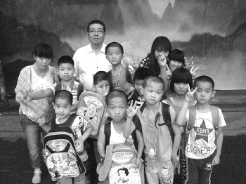 济南市邮政分公司发行投递局领导和孩子们的合影。