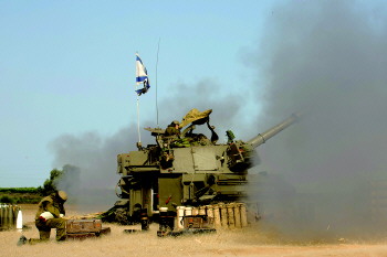12日,一门以军自行榴弹炮向加沙地带开火。新华社/基尼图片社