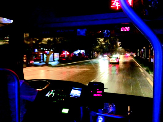凌晨0点半,101路车内乘客稀少,车外车辆也稀少,路况非常好。
