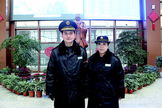 在京沪高铁曲阜东站有这样两位工作人员——他们既是同一岗位上的同事又是同窗同学,更重要的是他们是一对让所有人都羡慕的好夫妻。这两位在济南铁路局被传为佳话的“夫妻档”,便是京沪高铁曲阜东站的李猛和孙蓓。