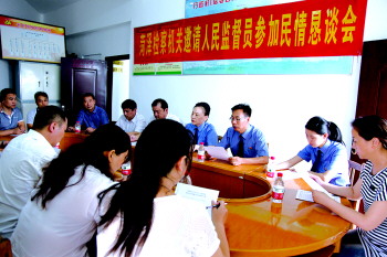 11日,菏泽经济开发区检察院派驻岳程检察室检察官们深入辖区内和平社区召开民情恳谈会,并邀请3名人民监督员进行现场监督。