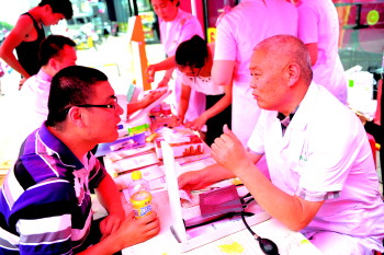 慈铭体检免费义诊引来外地游客量血压