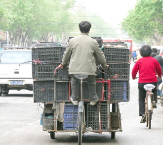 时间:2014年5月14日 自述:为了多拉快跑,专门弄个高高在上的车座以便高“站”远瞩。 点评:看得远了,危险却近了。