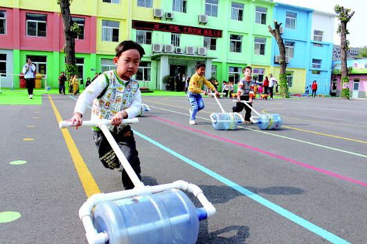 天桥区幼教中心第三实验幼儿园的孩子们进行课间活动。幼教和小学教育各有各的计划和章程,孩子该走哪一步就应该走哪一步,提前衔接有“拔苗助长”之弊端。(资料片) 本报记者 李飞 摄
