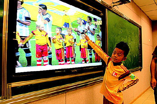 14日凌晨,第20届巴西世界杯在圣保罗圆满落幕。此前荷兰与阿根廷的半决赛,来自山东济南的中国小球童王一帆牵手阿根廷队员入场。14日上午,记者在甸柳一小采访了刚刚返校训练的王一帆。他告诉记者,希望再次出现在世界杯赛场,不是去当球童,而是中国国家队队员。