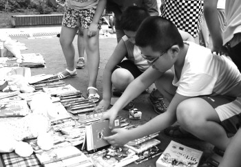 “我用这两本漫画书,换你的这本《哈利波特》,行不行?”但接过漫画书,姜燕青翻了一下,似乎并不满意,于是在哥哥的建议下,走到对方的书摊旁,挑了一本《丛林大冒险》,当场成交。“孩子平常很喜欢看书,买了很多,看完后就放在家里,都很新,卖了怪可惜。”姜燕青的妈妈告诉记者,她在报纸上看到暑期换物节的活动,专门带孩子从邹城来参加,不仅实现旧书再利用,还想让孩子在活动中学会分享。