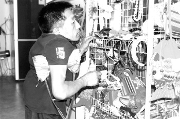 身高仅有1.08米的“瓷娃娃”王希林希望能尽早卖掉小店内的工艺品,为妻子筹集更多治病钱。 本报记者 孙淑玉 摄