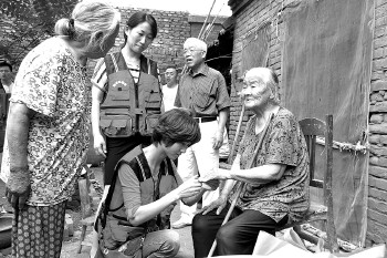 12日,当地志愿者们从四面八方会聚唐塔脚下,9点钟,50多人的志愿队伍来到红庙村。退休的老政协主席张友彬不仅捐出200元钱,还找到村干部商议为老夫妻进行民政帮扶。当日,志愿者们共为老人捐助5260元,并送去慰问品,唐塔办事处的工作人员闻知也送去1000元。志愿者们有的帮忙搬砖盖房,有的给老人修剪指甲……一个个“红马夹”忙得不可开交。