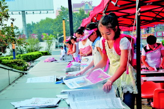 14日,在汽车站售报站点,经过一周的锻炼,小报童插报的速度越来越快。 记者 王震 摄