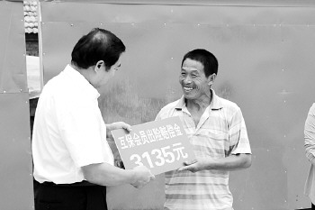 领到理赔金的渔民很高兴。 本报记者 高雯 摄