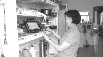 73岁的彭学勤空闲时就跟着视频学习广场舞。 本报记者 修雪皎 摄