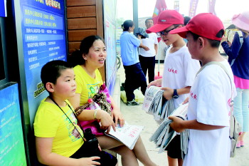“继续加油哦!”16日上午在奥帆中心,从北京来青岛旅游的田东辉女士从小报童的手中买了一份报纸后,还开口鼓励小报童加油。她告诉记者,这两天在中山路和台东步行街游玩时,她都看到了一些身着齐鲁晚报标志衣服的小报童的身影。她说,小报童进行暑期训练的做法应该多加鼓励。