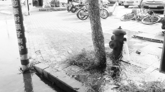 15日下午,记者在光明路与青檀路交叉路口看到,水流从消防栓一侧喷涌而出,水流蔓延到路面上堆积在低洼的道路边长达十余米,致使许多途经此处的行人绕道而行。 本报见习记者 王开元 实习生 徐浩 摄影报道