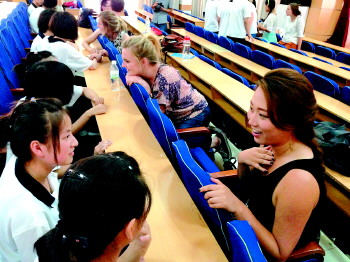 近日,由长清中学、济南公安局长清分局治安大队出入境管理科和山东交通学院国际教育学院联合主办的“快乐汉语体验月”活动在长清中学举行。据了解,来自美国的18名游学生将在中国进行为期一个月的交流体验,感受中国文化,提升汉语交流能力。图为美国游学生与长清中学学生在进行交流互动。