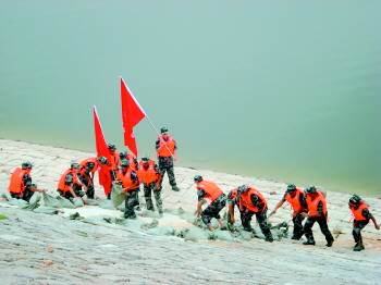 进入汛期,为历练防汛队伍应急反应能力,近日,济南市暨长清区2014年防汛抢险演练在张夏镇石店水库举行。