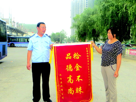 “我这公文包里不只有这8000元现金,银行卡内还有100多万的业务资金,如果找不到这些东西,我有可能就崩溃了,直是太感谢您了。”刘女士来公司领取失物时说。7月12日上午,刘女士将一面写有“品德高尚,拾金不昧”字样的锦旗送到艾兵建手中。