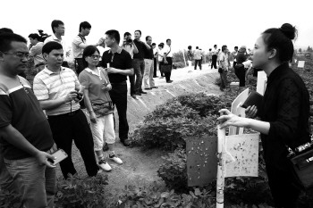 7月10日,全国农作物病虫害绿色防控现场会议在邹城召开。来自全国各省市区的农技专家聚焦邹城市绿色防控工作,学习、借鉴邹城市绿色防控技术和工作举措。图为与会人员在峄山绿色防控区听取经验介绍。