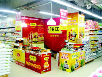 维客超市传江香油柜台。