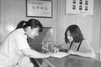 临清市地税局按照省、市局有关要求,认真落实小微企业所得税优惠政策。图为该局办税服务人员辅导纳税人填写2014年企业减免税调查表。 (王红阳)