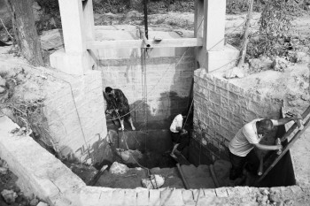 7月17日,施工人员在岔河东岸修理长河公园与岔河相通的水闸,保障长河公园汛期安全。