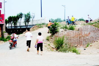 7月17日,在迟迟不能开通的三八西路运河桥上,过往的市民已经走出一条简易的“便”道。