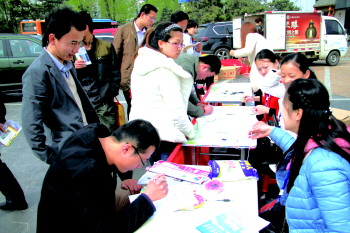 本报今年春季大型相亲会,不少人现场报名。(资料图)