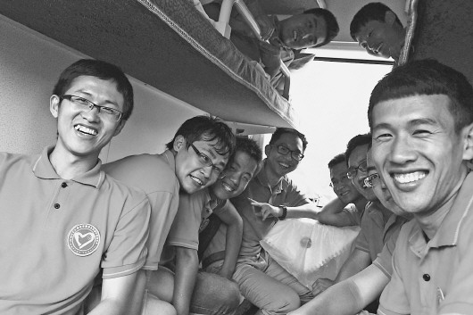 ◥22日晚,聊城大学19名西部计划志愿者在前往乌鲁木齐的火车上。