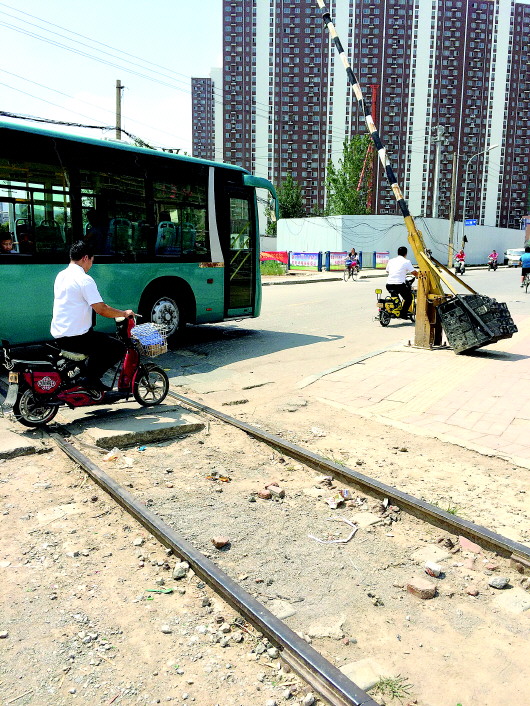 记者沿着白马山南路由西向东走去,发现白马山南路上共有3个还在使用的铁路道口,其中两个是附近居民每天上下班的必经之路,铁道周边的路况比较差。