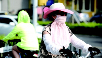 连日来,省城持续高温,人们纷纷采取措施挡烈日。人们都盼着能下场大雨降降温。 本报记者 周青先 摄