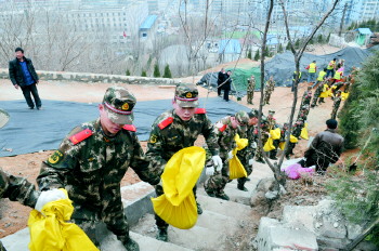 历下区驻区武警部队参与山体绿化。