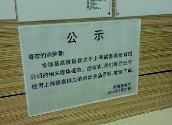 当日,记者又来到位于青年路的一家肯德基门店,店内购物的市民络绎不绝。在点餐台的一侧墙上贴着一张告示,写着“肯德基高度重视关于上海福喜食品有限公司的相关媒体报道。经核实,我们餐厅没有使用上海福喜供应的肉类食品原料”。而对此,店内的一名工作人员也称,店里所用的肉类原料均是由青岛的公司统一配送,没有福喜原料,可以放心食用。