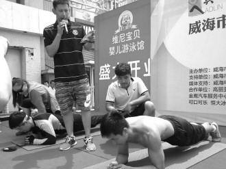 近日,威海市体育发展服务中心和威海奥林国际健身中心在侨乡广场联合举办了首届全民健身平板支撑挑战赛。170余名市民报名参加,一试身手。图为比赛现场。