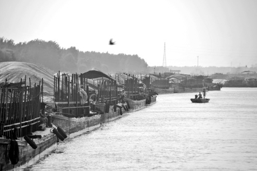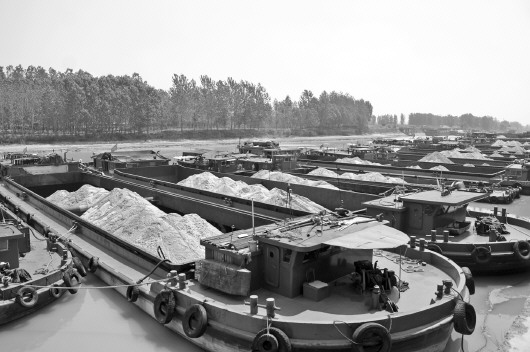23日,受枣庄段运河停航影响,大量船只改道西线,致京杭大运河西港段出现了拥堵的场面。 本报记者 李岩松 摄