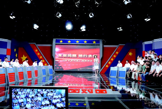 群众见面会由会议室搬进演播厅进行现场直播。 本报记者 刘雅菲 摄