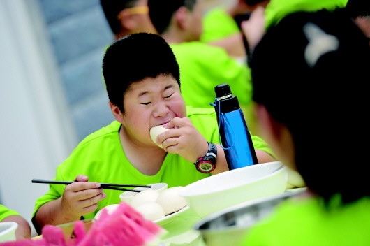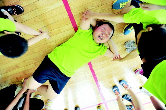 他们来自全省各地,年龄在7岁—16岁之间,90%以上的孩子属于超体重。暑假里,也许很多小朋友在家里吹着空调吃着冰棍,但是在这里,这些孩子为了减肥而开始了封闭式训练。在辅导员的带领下,他们有计划地进行运动,通过有氧训练、减脂运动、拓展训练、有机饮食及行为矫正等,来培养科学营养的饮食习惯和健康运动的生活方式。刚开始,有不少孩子因为想家等原因偷偷抹眼泪,但是在辅导员的安慰及小伙伴的鼓励下,很快融入到紧张有序的训练中来。来自淄博的12岁的小刘个子将近175cm,但是体重却足有90多公斤。在减肥过程中,他努力按照辅导员的要求去做,一个星期后在体检中,他竟然瘦了12斤,让他高兴不已。跟他一样瘦下来的还有十几个小朋友,大家兴奋地说,只要“管住嘴,迈开腿”,还真瘦下来了!