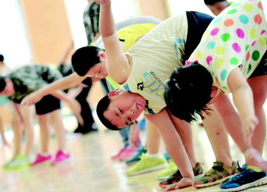 “孩子们,再坚持一下,我们做完这组就休息好吗?”23日,在山东省青少年素质教育中心常青营地的体育馆里,125个孩子正在做着各种形体动作。当日济南高温达38℃,不动都会出一身汗,而偌大的体育馆没有空调,如同蒸笼一般。汗水顺着孩子们的脸颊、脖子滑下来,衣服全部湿透了。