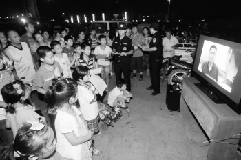 本报菏泽7月23日讯(记者 邓兴宇) 22日晚上,大剧院牡丹广场一场特殊的情景剧放映吸引了众多在此散步休闲的市民。“用这样的方式宣传诈骗安全防范真的不错,让我们老年人一看也知道怎么回事,尽可能认清各种诈骗行为。”67岁的王利民一边看着情景剧,一边告诉记者。