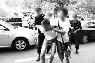 ▲22日上午,民警在昆明路上抓获张某(通讯员 刘远昭 摄)