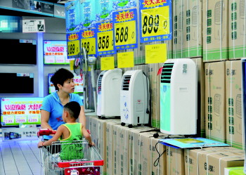 23日,记者从各大商场处了解到,空调扇和风扇是这两天购买数量最多的消暑家电。