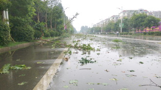 23日中午十二点半,在峄城区解放南路沿侧和坛山路以北区域,狂风突然席卷而来,顷刻间暴雨泻下,持续约二十分钟。一时间,道路积水、广告牌拦腰折断、不少行道树被风刮断。然而,同在峄城区的坛山路以南却没有暴风雨,相距不远的市中区部分区域也艳阳高照,出现了“同城不同天”的天气现象。 本报见习记者 孟令洋 本报记者 刘婷婷 摄影报道