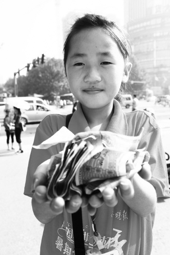 盛鹏圆8点卖完报纸,展示自己收入。 本报记者 李军 摄
