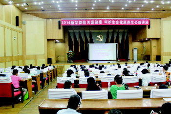 为给聊城人民带来高水平的健康养生知识,2014年7月19日上午,由新华保险聊城中支主办的“关爱健康、呵护生命”健康养生公益讲座如期在东昌宾馆小礼堂召开,到场嘉宾主要面向新华保险的新老客户,整个小礼堂座无虚席。本次大型健康养生公益讲座是新华保险第14届客户服务节重点项目之一,特邀卫生部健康教育特聘专家刘玄重教授亲临授课。