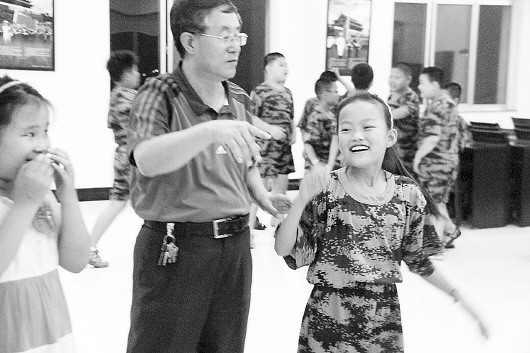 仇老师正在和孩子们做互动游戏。