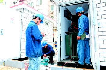 24日下午2点多,记者在位于济南市西苑小区内的仁丰家园看到,济南供电公司的几名工作人员正在现场作业,对新安装的两台箱式变压器进行投运前的耐压试验。下午4点,工作人员将低压室电闸一合,该小区居民正式用上济南供电公司的直供电。