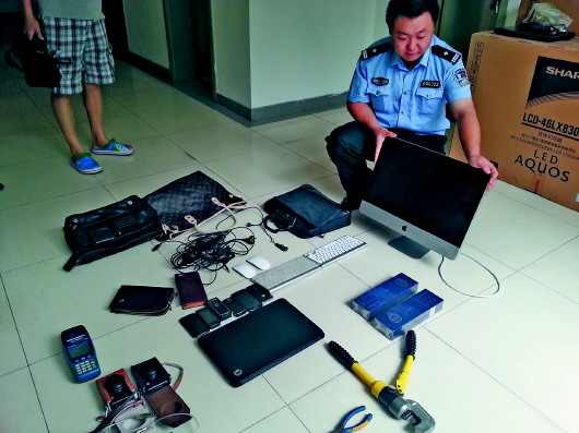 刘明盗窃的电脑等物品。 本报记者 尉伟 摄