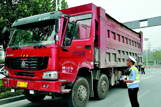 交警大队以章莱路大货车专项治理为重点,辐射章莱路、国道309线、省道242线、潘王路、章丘大道等大货车通行的重点路段,实行全天候巡逻、布控、堵截;对大货车集结闯关、无牌无证、悬挂第二号牌、加高挡板、超载超速等严重道路交通违法行为进行严查严处(右图)。